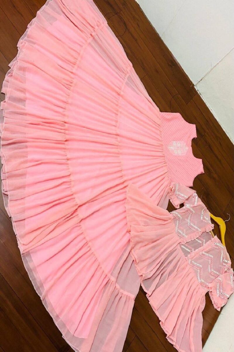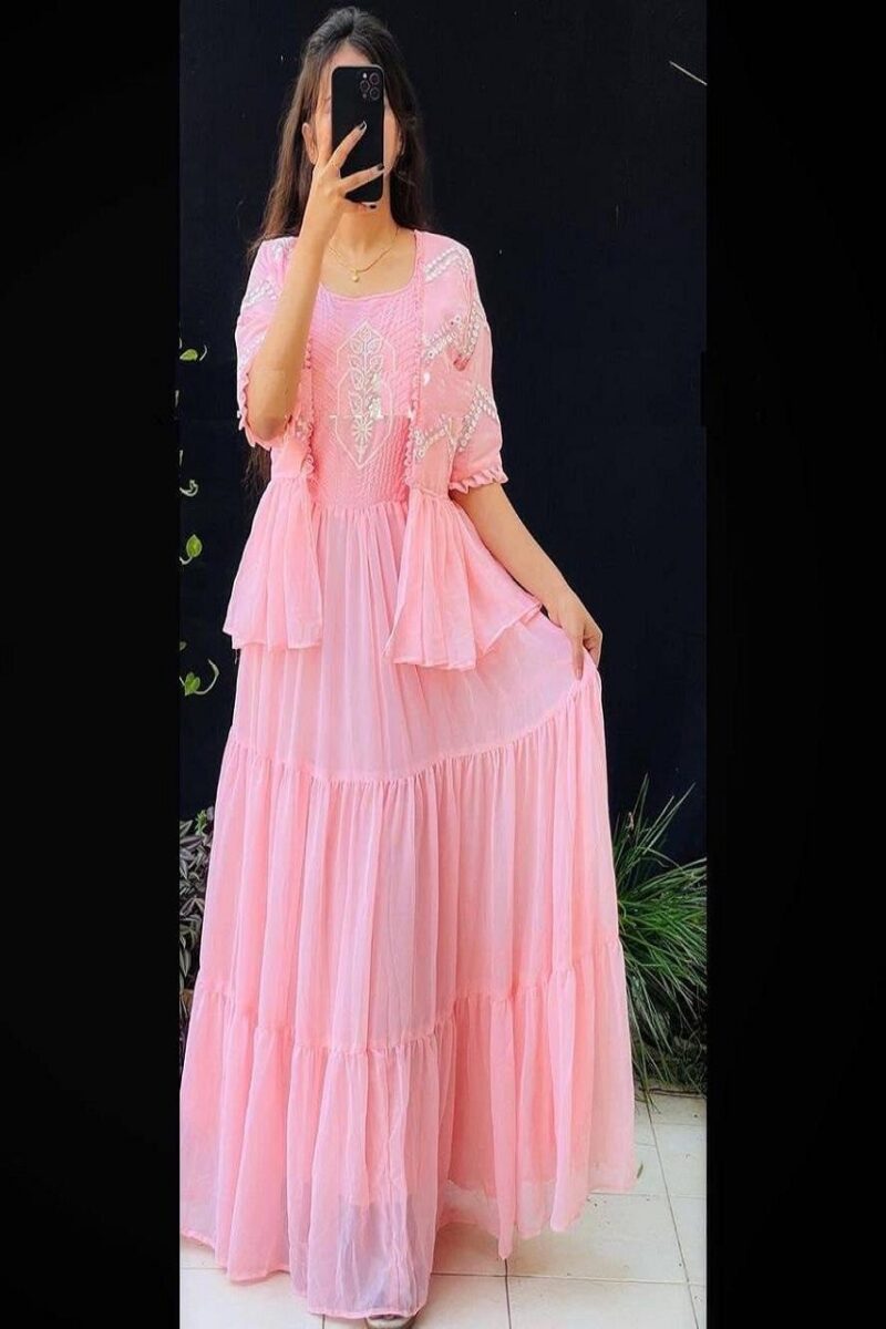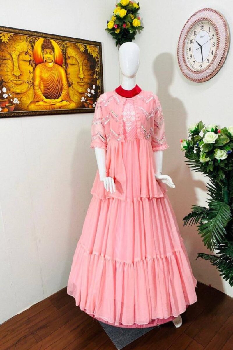 GOWN FABRIC FAUX GEORGETTE WITH HEAVY EMBROIDERY WORK WITH FULL FLAIR 3 STEP RUFFLES